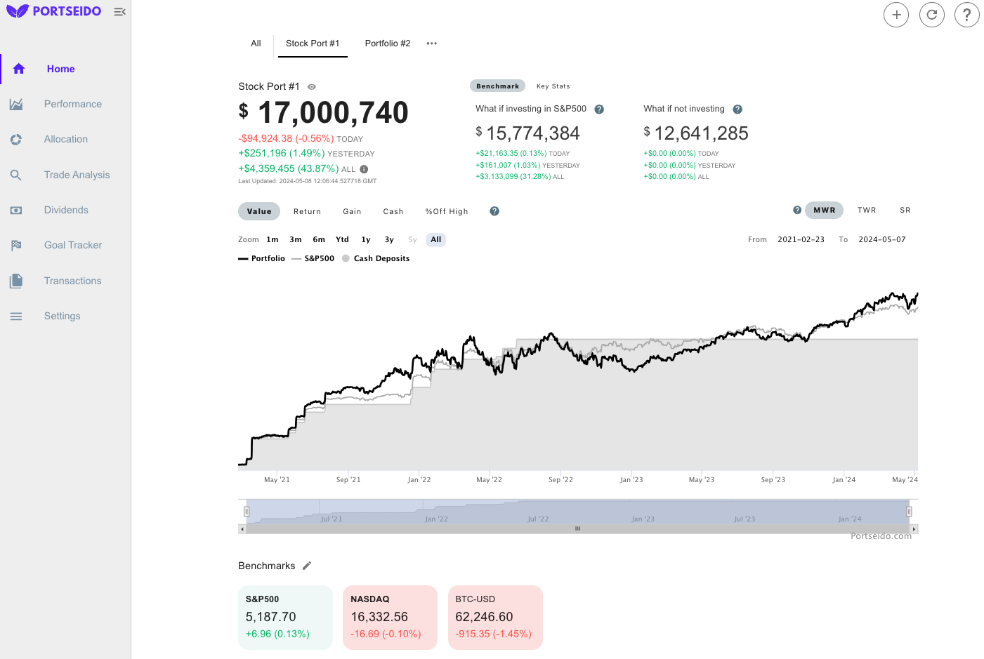 Portseido is a comprehensive portfolio tracking tool that offers extensive analytics and visual representations of investment data. It features insights into historical performance, trade analysis, and asset allocations, complemented by in-depth analytics capabilities. With access to more than 70 stock exchanges, upwards of 20,000 cryptocurrencies, and various ETFs, it enables both international and global investors to consolidate their investment portfolios in a single platform. By doing so, it empowers users to monitor and manage their investments more effectively. Ultimately, our mission is to equip investors with a user-friendly resource that enhances their investment decision-making skills.