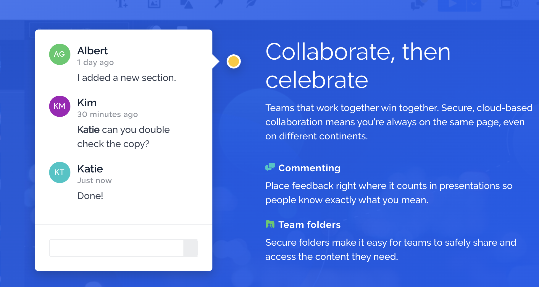 Prezi serves as an online platform for creating presentations and analyzing data specifically tailored for business teams. The Prezi Business version is supported by a comprehensive array of collaboration, creation, and analytical tools. This innovative tool enhances sales and client presentations, fostering engaging conversations that enable businesses to interact and connect on a deeper level. Powered by Prezi Next, Prezi Business includes numerous features such as cloud-based commenting to promote smooth collaboration, performance leaderboards, access to a dedicated customer success manager, personalized design options, training resources, and much more. Additionally, the platform aims to elevate the overall presentation experience, ensuring that teams can effectively communicate their ideas and insights.
