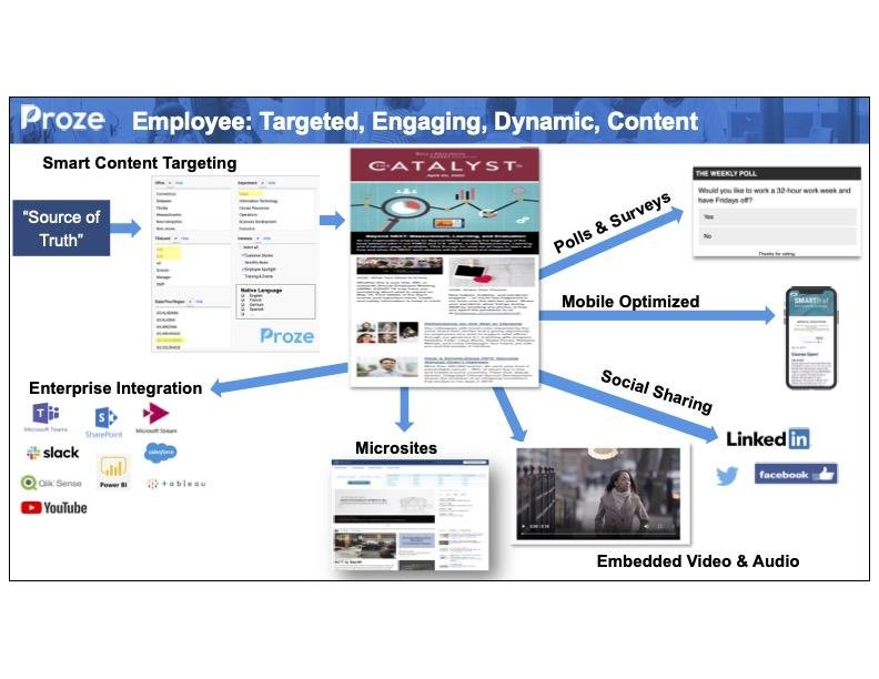 Key features of Proze include dynamic SMART content tailored to each employee's interests, roles, or departments, seamless integration with Active Directory, Workday, and various HRIS systems, and a customizable email editor that offers both ease of use and template locking capabilities. Additionally, it supports audio podcasting and embedded video, provides micro-sites, landing pages, searchable archives, and a unique "favorites" page for each employee. Other notable features are countdown clocks to highlight important events or deadlines, social media integration, time-zone broadcasting, and the innovative option to "resend to inactive employees." Lastly, Proze enhances engagement through embedded quizzes and polls, making it a comprehensive tool for modern workplace communications.