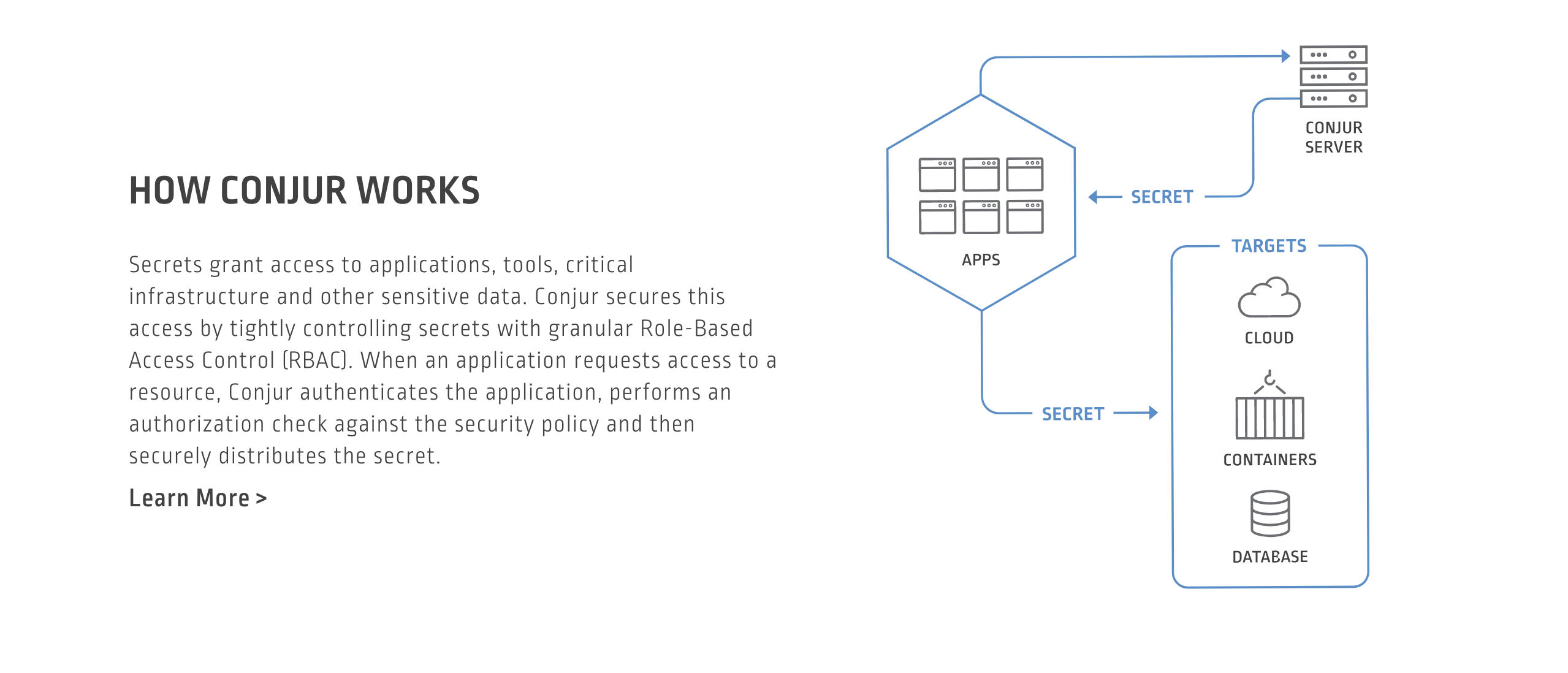 A robust open-source interface designed for secure authentication, management, and auditing of non-human access across multiple tools, applications, containers, and cloud environments is crucial for effective secrets management. These secrets are essential for accessing various applications, critical infrastructure, and other sensitive data. Conjur strengthens this security framework by implementing strict Role-Based Access Control (RBAC) to manage secrets effectively. When an application requests access to a resource, Conjur first verifies the application's identity, followed by an assessment of its authorization based on the defined security policy, before securely delivering the required secret. The architecture of Conjur operates on the principle of treating security policies as code, with these policies documented in .yml files, version-controlled, and uploaded to the Conjur server. This methodology elevates the importance of security policy to that of other elements in source control, promoting greater transparency and collaboration regarding the security practices of the organization. Moreover, the capability to version control security policies not only simplifies updates and reviews but also significantly bolsters the overall security posture of the organization, ensuring that security remains a priority at all levels. In this way, Conjur contributes to a comprehensive approach to managing sensitive information securely and efficiently.