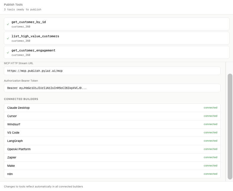 Pylar acts as a secure intermediary, facilitating safe interactions between AI agents and structured data without allowing direct access to databases. Initially, users can connect a variety of data sources to Pylar, including systems such as BigQuery, Snowflake, and PostgreSQL, in addition to business applications like HubSpot and Google Sheets. Once connected, users can create governed SQL views through Pylar’s user-friendly SQL IDE, which outlines the exact tables, columns, and rows that AI agents are permitted to access. Furthermore, Pylar allows for the development of “MCP tools,” which can be easily created using natural language prompts or manual configurations, transforming SQL queries into standardized and secure operations. After these tools are crafted and rigorously tested, they can be published for use, enabling agents to fetch data through a consolidated MCP endpoint that works seamlessly with a variety of agent-building platforms, including custom AI assistants and no-code automation solutions like Zapier, n8n, and LangGraph, along with development tools like VS Code. This streamlined access not only bolsters security but also significantly improves the efficiency of data interactions for AI agents in various contexts, ultimately leading to more effective data management and utilization across industries.