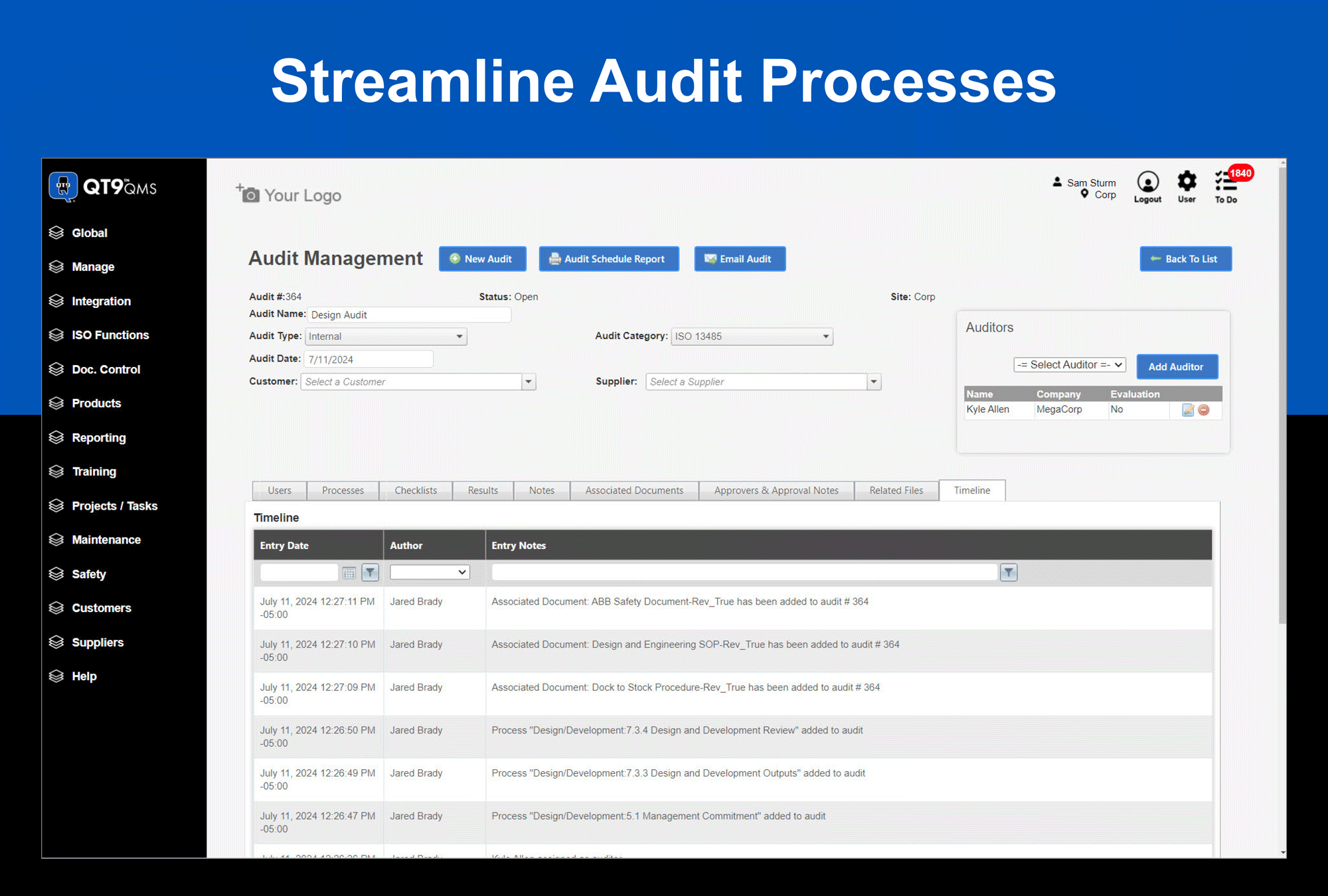 Streamline your quality processes with QT9's comprehensive cloud-based Quality Management System (QMS) Software Suite. Designed for ease of use, QT9 QMS features over 25 modules that offer unlimited scalability to meet your needs. Enhance your ISO and FDA compliance efforts with automated email alerts, task lists, and FDA 21 CFR Part 11 compliant electronic approvals.