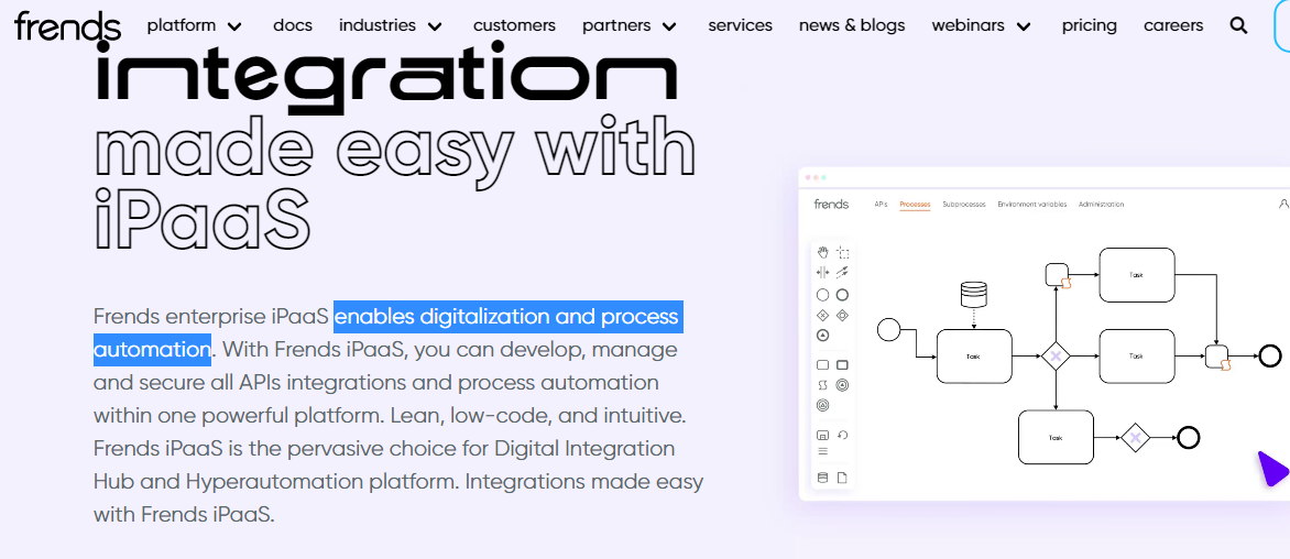Frends enterprise iPaaS promotes the seamless transition to digital processes and automation. This platform empowers users to develop, manage, and protect all API integrations and automation workflows through a single, powerful solution. Its sleek, low-code interface makes Frends iPaaS an appealing choice for those in search of a Digital Integration Hub and Hyperautomation platform. The integration process is made straightforward and efficient with Frends iPaaS. Users can take advantage of the widely recognized BPMN 2.0 standard to visually design their integrations, APIs, and automation tasks. The platform also accommodates open-source .Net Tasks, enhancing its extensibility. It offers a cohesive language for Business Process Automation (BPA), Robotic Process Automation (RPA), and APIs, ensuring clarity and consistency. Each visual low-code component in the integration sequence can be tailored using a comprehensive library of pre-built connectors, which can be further augmented with Handlebars-based C# code snippets. Fans of React will find Frends iPaaS particularly advantageous due to its compatibility. Furthermore, it allows for the deployment, tracking, and execution of integrations across a distributed environment, all through a centralized dashboard. Whether utilized in the cloud or on local servers, Frends iPaaS delivers a flexible answer to contemporary integration challenges. This all-encompassing methodology guarantees that organizations are well-equipped to adapt and succeed in a rapidly changing digital world, empowering them to seize new opportunities as they arise.