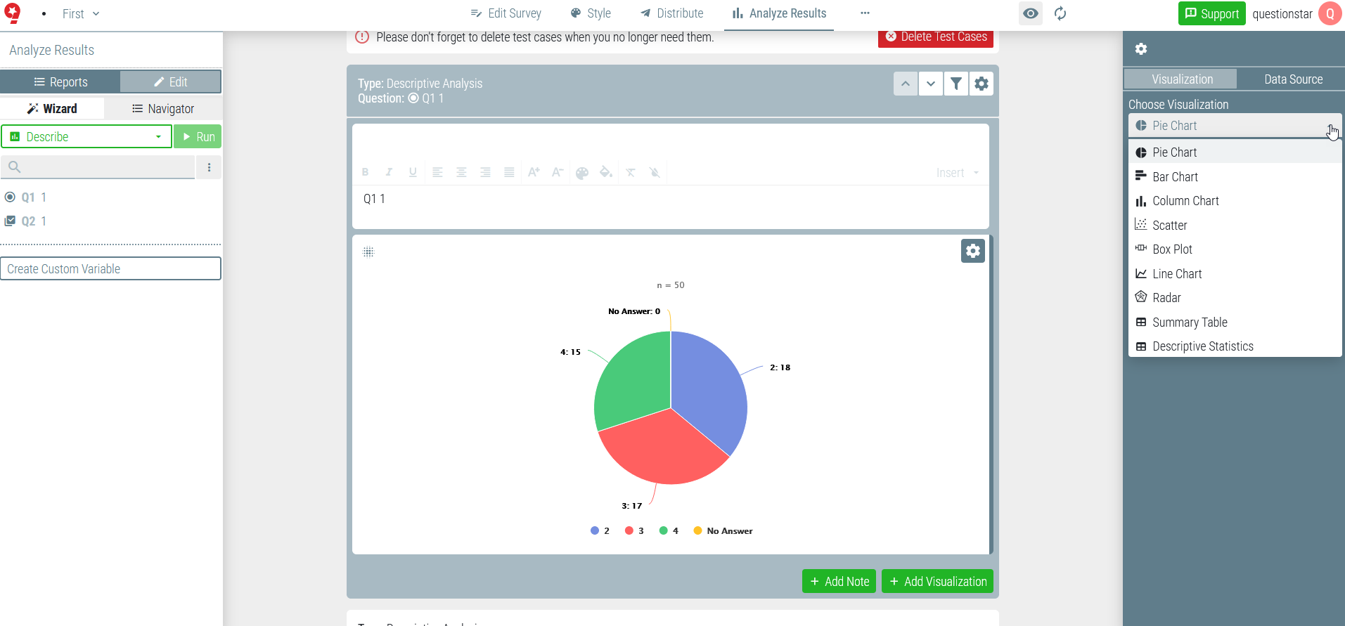 QUESTIONSTAR serves as an effective solution for administering online surveys, enabling users to design professional-grade surveys that can range from simple to highly complex, while also providing robust data analysis capabilities. It facilitates various analytical methods such as correlations, crosstabs, regression analysis, and t-tests, all accessible online. This tool often negates the necessity for supplementary analysis software, as it incorporates a comprehensive suite of professional features across all pricing tiers. Each paid plan offers extensive customization options for surveys and the ability to create white-label designs. Additionally, results, including tables and graphs, can be exported and modified using MS Office. Importantly, a free version is also available, ensuring that users can explore its functionalities without any financial commitment. Overall, QUESTIONSTAR stands out for its versatility and user-friendly interface, making it an appealing choice for survey creators.