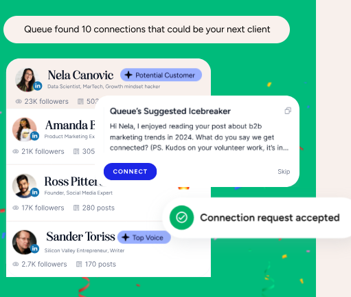 Enhancing your visibility as a recognized authority in your industry opens the door to numerous opportunities that come with such recognition. By regularly producing influential content, you can position yourself as the leading expert in your field of expertise. Utilizing AI tools, you can effectively identify and engage with your target audience, ensuring a steady influx of inbound inquiries. Queue provides a customized growth strategy along with cutting-edge AI resources aimed at boosting your LinkedIn presence significantly. This will enable you to quickly identify the specific topics and trends that resonate with your audience. By leveraging AI, you can craft content that genuinely reflects your distinct voice and viewpoint. Queue serves a diverse range of professionals, including subject matter experts, business leaders, solopreneurs, consultants, freelancers, coaches, and executives who are looking to achieve the recognition they merit. If you have extensive knowledge and experience, Queue is equipped to help you transform that expertise into a powerful reputation and an engaging personal brand that attracts leads naturally. Additionally, Queue optimizes the range of opportunities at your disposal, ensuring you meet your goals while simultaneously enhancing your market visibility. Seize this opportunity to cultivate your brand and engage with an audience that appreciates your insights, ultimately fostering meaningful connections that can propel your career forward. By taking this proactive step, you not only elevate your professional standing but also contribute valuable knowledge to your community.