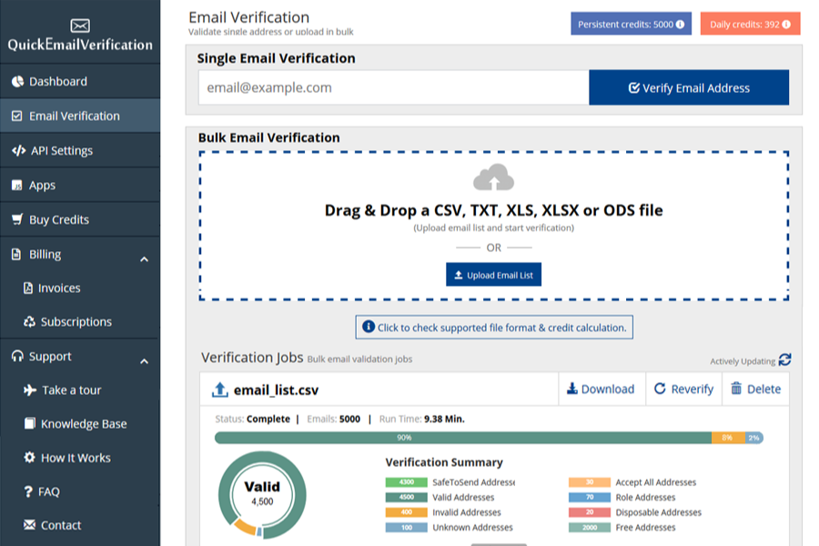 QuickEmailVerification is a premier email verification service that assists marketers in maintaining clean email lists, minimizing hard bounces, enhancing email deliverability, and boosting overall campaign effectiveness.