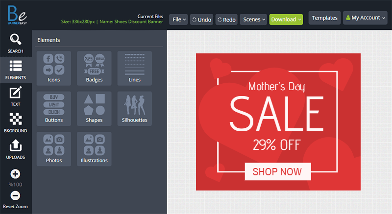 Bannereasy.com features a user-friendly graphic editor that enables you to rapidly create your own banner advertisements. With this tool, you can easily design complimentary static banners that are perfect for websites, online stores, and diverse marketing campaigns across social media platforms such as Facebook, Instagram, and Twitter. The graphic editor grants you the ability to produce tailored banners online, allowing for the creation of striking banners, social media graphics, logos, flyers, and much more without any charge! Within minutes, you can craft amazing banners and appealing social media visuals thanks to the robust editing tools offered. The platform boasts a vast selection of editable components, including icons, buttons, badges, ribbons, images, and backgrounds, to elevate your banner designs. You can pick from numerous high-quality templates for both banners and social media postings. By registering, you can store your designs in the cloud, making it convenient to modify or download your work whenever you wish! Whether you opt for a professional banner design from a comprehensive library or prefer to create something entirely new, Bannereasy simplifies the process of connecting with your audience on social media through its ready-to-use post templates or personalized designs. This adaptability makes Bannereasy an essential resource for anyone aiming to boost their digital footprint, ensuring that your marketing materials are not only effective but also visually stunning.