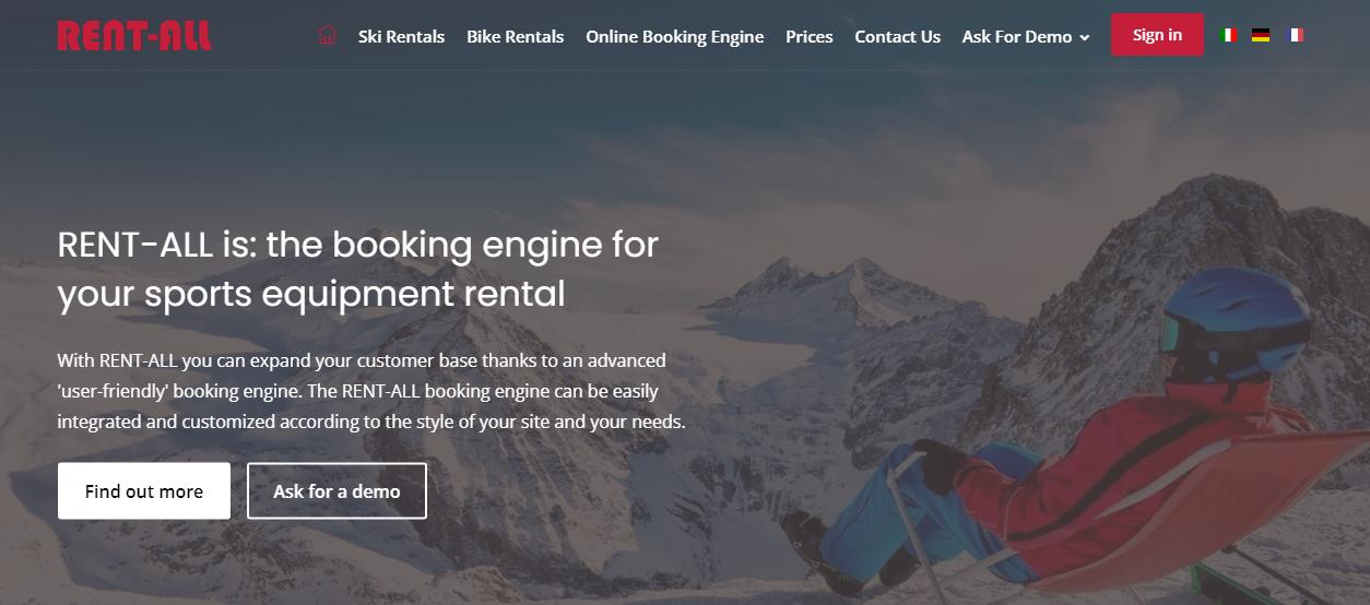 RENT-ALL is a cloud-driven management solution designed specifically for ski rentals, built upon over 25 years of partnerships with renters to elevate their overall experience. This wealth of experience results in a thorough service offering that encompasses online booking, delivery of materials that comply with the latest ISO standards, payment processing, and other features customized to meet renters' diverse needs. In addition, RENT-ALL is also applicable to the bike rental industry, providing tailored solutions to cater to its distinct requirements. All rental functionalities are consolidated into a cloud-based software platform, guaranteeing that users can access it from any device no matter where they are in the world. Moreover, the RENT-ALL Booking Engine features an intuitive online booking system that can be effortlessly integrated into any website, making it particularly well-suited for reserving sports gear such as skis and bicycles. This smooth integration not only streamlines the rental process but also significantly enhances the overall experience for both businesses and their customers, ultimately fostering a more efficient and enjoyable rental environment. With RENT-ALL, users can expect a modern approach to rental management that adapts to their needs.