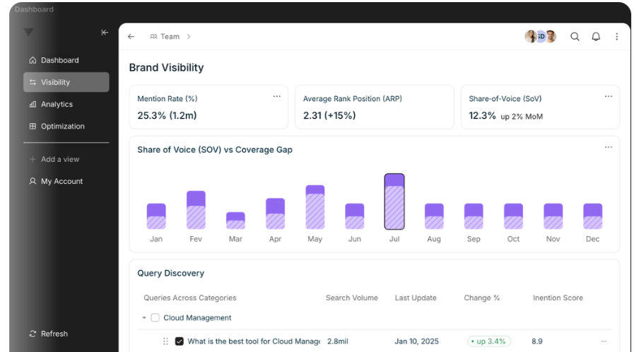 Rankshift is an advanced AI visibility tracking tool designed to help businesses monitor their presence across AI search engines, which are increasingly shaping how brands are discovered online. This tool provides a deep dive into how and where your brand is mentioned in AI-generated responses from platforms like ChatGPT, Perplexity, Claude, and Gemini, allowing businesses to optimize their digital visibility and stay ahead of the curve. Rankshift offers powerful benchmarking features that let you compare your brand’s AI visibility with competitors, ensuring that you can identify areas for improvement and capitalize on opportunities. It tracks AI mentions across a range of sources, highlighting which publishers and content creators are influencing AI results, giving you a strategic advantage. Businesses using Rankshift can also receive data-driven insights that help refine their outreach efforts, making it easier to boost brand recognition and visibility on AI platforms. As the digital landscape evolves, the tool equips brands with the ability to stay ahead of the competition, securing their place in the future of AI-driven search. By leveraging Rankshift, companies can improve their brand reputation, drive organic traffic, and increase their overall market share.