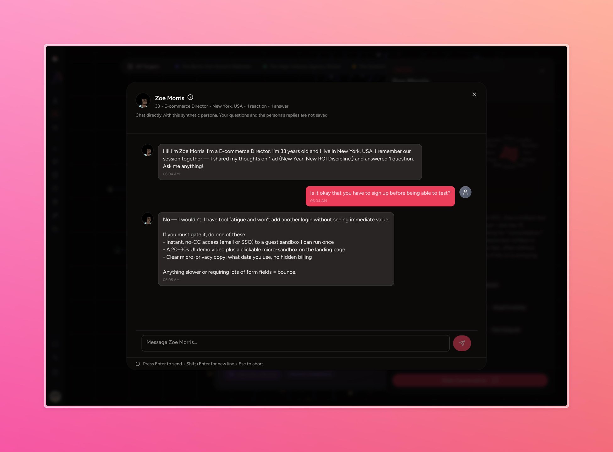 The personas offer valuable feedback regarding ads, assisting in revealing the most engaging strategies for interaction.