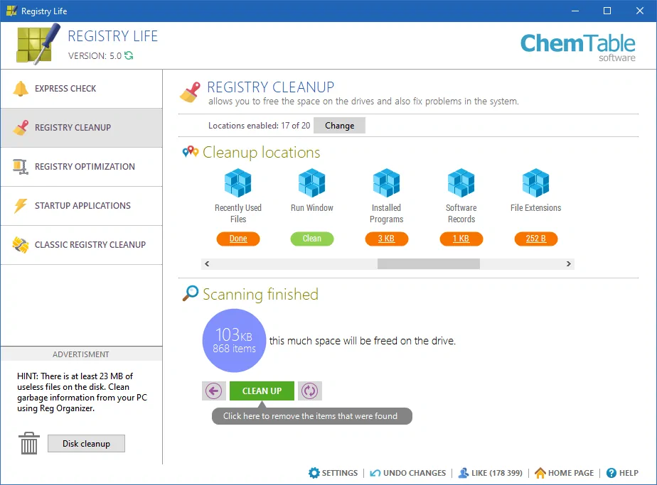 The system registry is essential for the operating system's functionality and overall performance, with its proper upkeep being vital for the efficiency of the applications running on it. The volume of data stored in the registry directly impacts how well these applications perform. Registry Life is a tool specifically created to address registry errors and improve overall performance. This user-friendly, compact, and free utility simplifies the management of your system's registry. It effectively cleans and repairs the registry by allowing users to perform scans that can detect more than ten different types of problems. Moreover, it eliminates unnecessary data from the registry, thereby optimizing its contents. Registry Life also offers the ability to defragment and compress the registry efficiently. By quickly optimizing the registry, this software displays the results of its actions in a clear and comprehensible visual format. Ultimately, utilizing Registry Life can significantly enhance the stability and speed of your operating system, providing users with a smoother computing experience. With its easy-to-use features, Registry Life is an indispensable tool for anyone looking to maintain their system's performance.