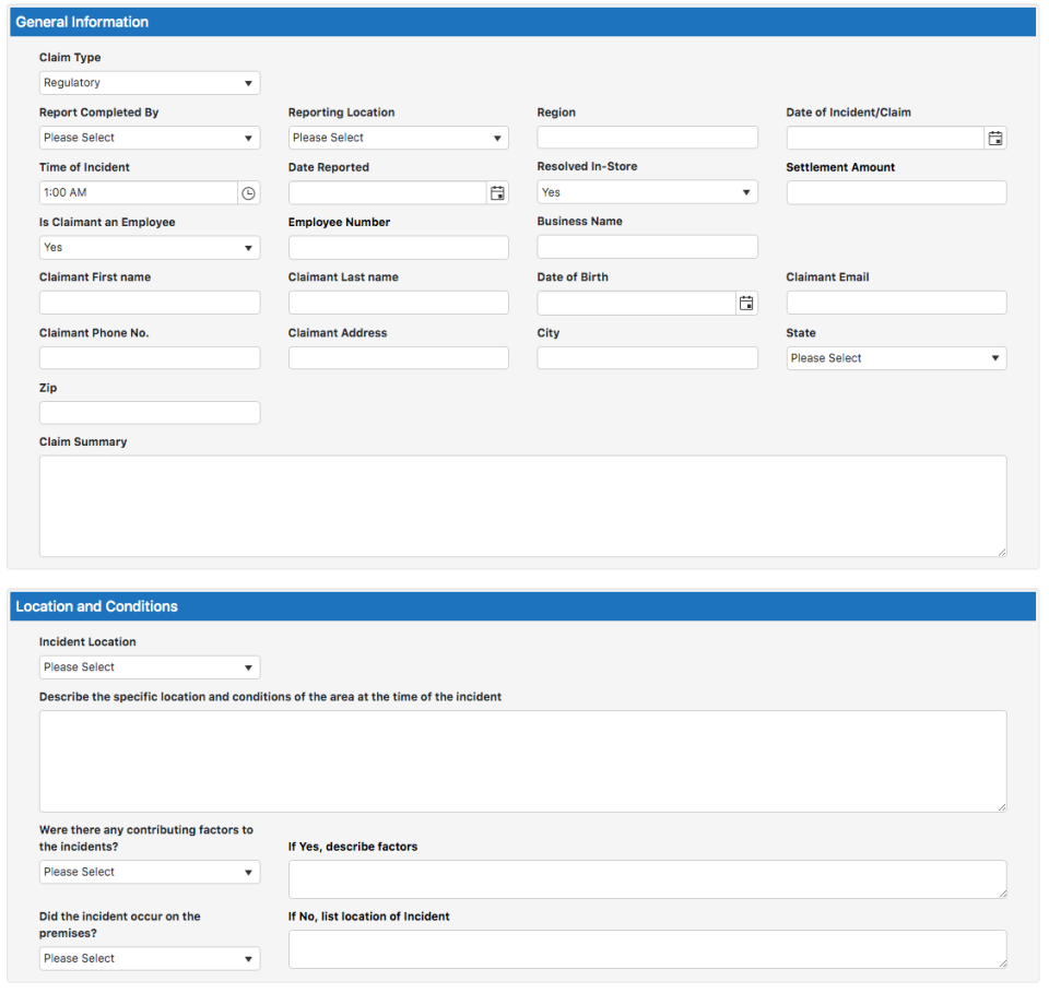 In terms of Claims & Incident Management, it facilitates the reporting of claims and incidents across numerous categories, including injury, medical, customer service, insurance, asset, liability, and workers' compensation.