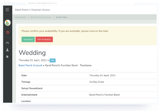 Band Pencil is an all-encompassing management tool tailored for entertainment industry professionals, efficiently handling every aspect of event organization. It includes features such as contract management, invoicing, member oversight, and financial monitoring. Designed for artists, agencies, band leaders, and solo musicians alike, our platform allows you to manage your performances from anywhere at any time, greatly enhancing operational efficiency for your entire team and clients. Recognizing the complexities of member management, we offer a "self-service" feature that grants your team 24/7 access to event information online. The importance of clients in your musical journey is paramount, and Band Pencil facilitates a dedicated client portal, enabling them to easily oversee their events. You have the ability to dictate your preferred line-up, and should any member be unavailable, we will swiftly check the next available option for you. Moreover, you can draft an email now for future sending, with the capability to choose the precise date and time for automated dispatch. This high degree of flexibility guarantees that all your communications are prompt and well-organized, ensuring a seamless experience for everyone involved. Ultimately, Band Pencil is more than just a management tool; it is a vital ally in elevating your event coordination to new heights.