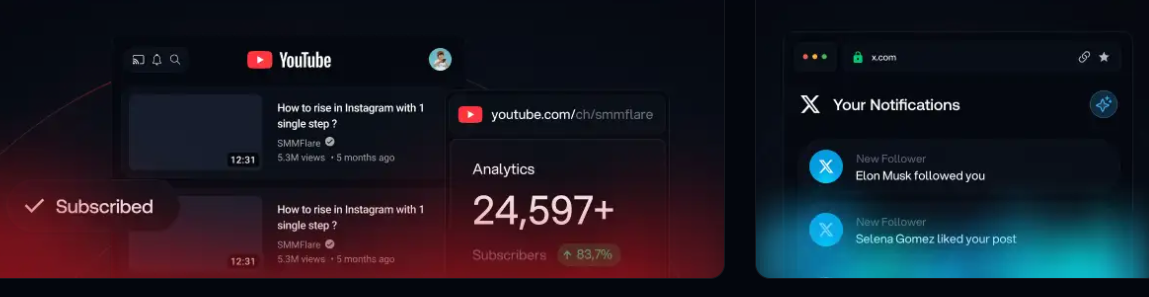 SMMFlare offers an affordable social media marketing panel that provides a variety of services, including followers, likes, views, shares, and comments on major platforms such as YouTube, Instagram, TikTok, Facebook, and Twitter. This platform enables users to boost their online visibility through quick service delivery and features like bulk ordering and automated payment options. Moreover, SMMFlare comes equipped with an extensive selection of marketing tools, including drip-feed services, user-friendly APIs, and the ability to handle mass order setups. It supports global transactions, including cryptocurrency payments, and guarantees 24/7 assistance for its users. What distinguishes SMMFlare is its competitive pricing, easy-to-navigate interface, regular updates, and dedication to delivering top-notch service, all designed to ensure customer satisfaction. Users have the ability to easily manage their orders, track performance metrics, and effectively enhance engagement on a variety of social media platforms, making it a well-rounded solution for digital marketing needs. Consequently, SMMFlare stands out as an invaluable asset for anyone aiming to efficiently and cost-effectively expand their social media presence while enjoying a seamless experience throughout the process.