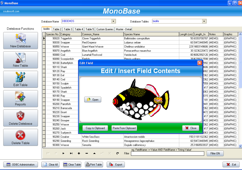 You have the ability to create both flat and relational databases with an unlimited number of fields, tables, and rows, and a custom report generator is provided to facilitate this process. By connecting to compatible ODBC databases, you can craft personalized reports tailored to your needs.