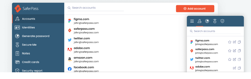 Safeguard your password in one place and access it securely on all of your devices, whether they be a PC, Mac, iOS, or Android, using browsers like Chrome, Safari, and Edge, along with various mobile apps. SaferPass provides an offline mode that allows you to access your password even when you're not connected to the internet, making it a reliable choice. Setting up the service is a breeze, whether you're using a desktop or a mobile device. After logging in, SaferPass can conveniently auto-fill your login credentials and passwords, streamlining the process and saving you time by completing each required field accurately. In addition to its convenience, our password generator creates strong, unique passwords and seamlessly autofills them for any account you possess. We have also rolled out a cutting-edge feature named Secure Me, which gives you the ability to remotely log out of your computer or tablet, providing an extra layer of security for all your accounts and files. With Secure Me, you can feel at ease knowing that your laptop can be left unattended or borrowed without risk to your security. This innovative approach to password management not only enhances convenience but also significantly boosts your safety across various platforms. Moreover, the ease with which you can manage your digital security elevates your overall online experience.