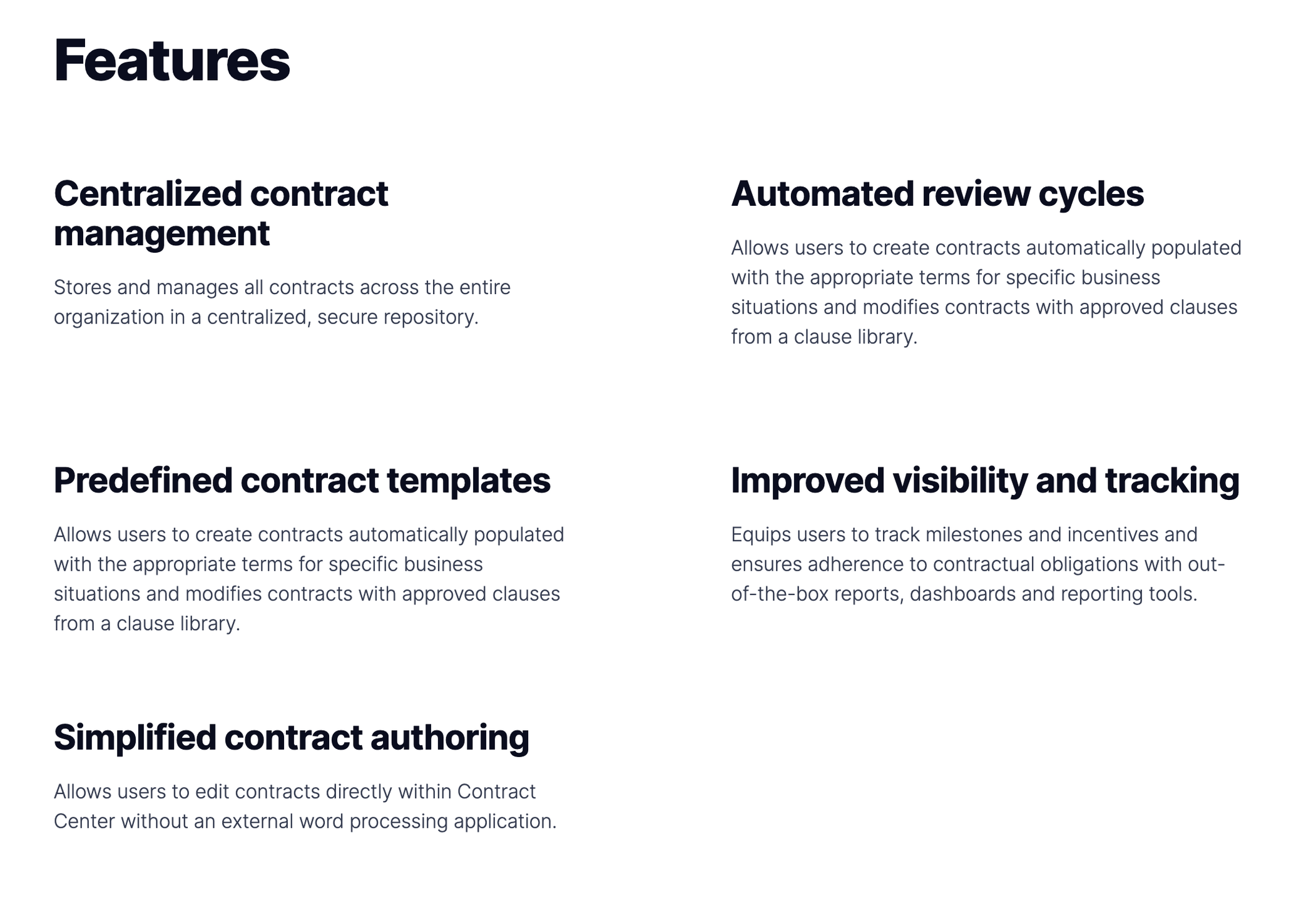 OpenTextâ„¢ Contract Center dramatically reduces the time taken for contract cycles and improves overall operational effectiveness. This innovative platform transforms the management of contracts by moving away from disjointed document practices towards integrated and intelligent workflows. It streamlines the entire contract lifecycle, which includes stages such as creation, negotiation, approval, management, and renewal, all through automation. The system promotes smooth collaboration by allowing both internal teams and external partners to access all contracts easily. Moreover, it enhances the contract creation process, manages document workflows efficiently, and strengthens compliance via advanced automation methods. Users benefit from the ability to generate extensive reports that pull together data from multiple sources, such as ERP and CRM systems, providing critical insights that can benefit the whole organization. In addition, the platform can automatically create contracts filled with pertinent terms customized for different business situations, while also permitting changes through pre-approved clauses stored in a clause library. This comprehensive strategy not only streamlines contract management but also significantly improves decision-making and strategic planning across the enterprise, ultimately leading to more effective business operations. Furthermore, the emphasis on collaboration and data integration ensures that all stakeholders are well-informed and aligned throughout the contract lifecycle.