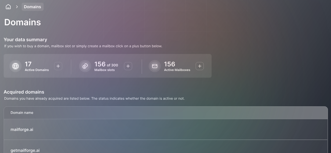 Easily create a multitude of domains and mailboxes within minutes, all while guaranteeing exceptional deliverability and an automated setup at no cost. Say goodbye to the complexities of email templates and effortlessly send tailored emails in multiple languages on a massive scale. With Mailforge, you obtain crucial infrastructure that streamlines domain and mailbox oversight, making it simpler than ever to manage your email requirements effectively. Additionally, the intuitive interface enables swift modifications and enhancements to further optimize your email campaigns, ensuring maximum impact and engagement. This comprehensive solution empowers users to focus on their messaging while Mailforge takes care of the technical details.