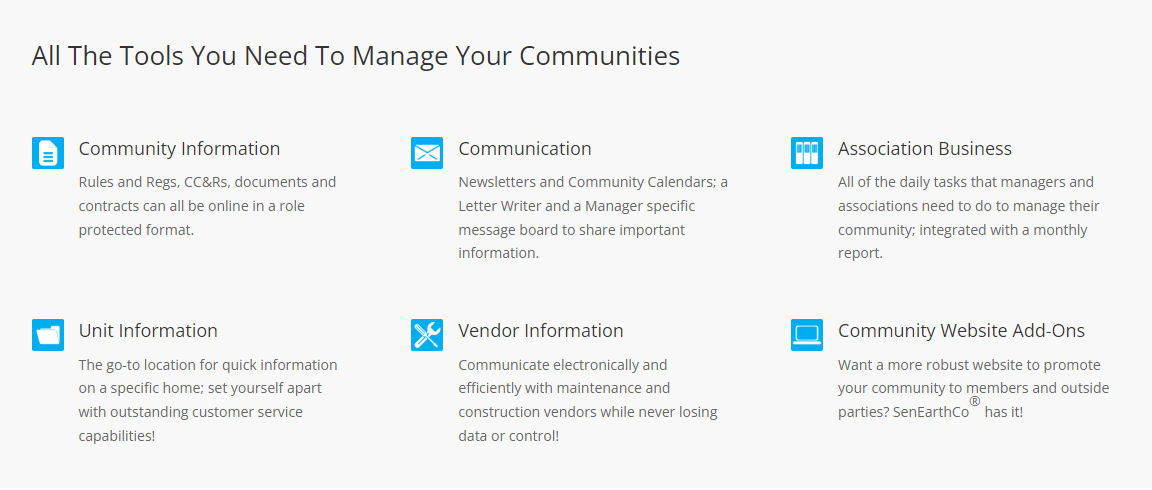 Our platform offers managers an efficient way to oversee associations while facilitating communication with Boards and homeowners, as well as sharing information with internal staff and vendors. The management tasks are simplified through an integrated system that seamlessly aligns with your accounting software. This system includes all the vital daily operations necessary for managers and associations to effectively run their communities, accompanied by a detailed monthly report. It acts as the go-to resource for quick information about specific homes, enabling you to stand out with outstanding customer service capabilities! You can ensure clear and effective communication with maintenance and construction vendors, while keeping data secure and under control. Additionally, SenEarthCo® improves operational efficiency and minimizes frustration, fostering better relationships between management and homeowners, which contributes to a more cohesive community atmosphere. By implementing this groundbreaking solution, you can elevate your community management efforts to unprecedented levels of success. Ultimately, this not only benefits the managers but also enhances the overall experience for residents in the community.