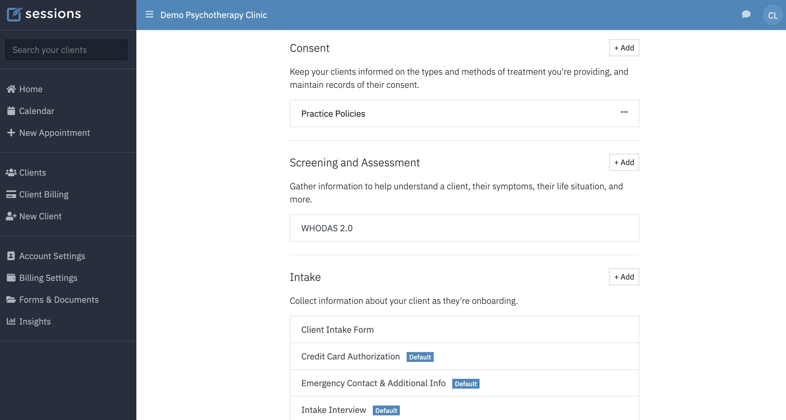 Sessions Health offers an electronic health record (EHR) system designed to enhance both operational efficiency and the therapeutic relationship between practitioners and their clients. Our focus is on supporting psychotherapists and mental health experts in effectively managing their private practices or clinics while fostering stronger connections with those they serve. Understanding the significance of these relationships, we have developed an EHR equipped with tailored features aimed at reinforcing these vital connections. By prioritizing the needs of both professionals and clients, we strive to create an environment where effective therapy can flourish.