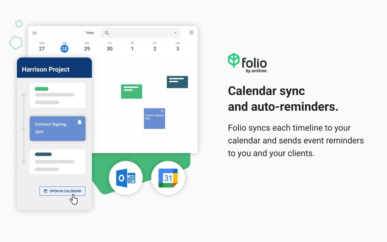 Folio enables real estate agents to efficiently manage their transactions directly from Gmail or Outlook, while providing seamless integration with GSuite and Microsoft 365. With the trust of over 100,000 agents, Folio aids in timely closings, impresses clients, and generates more referrals.