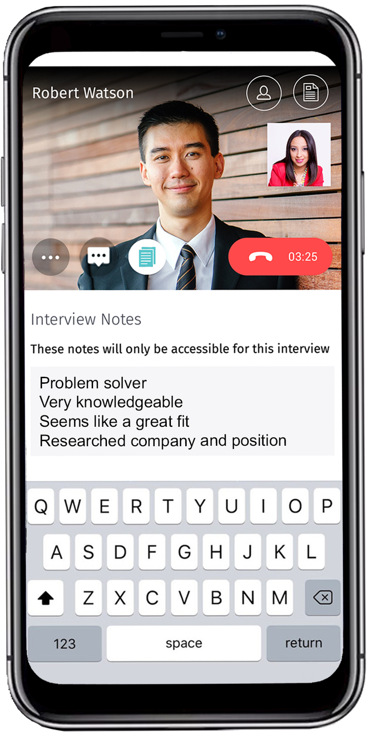 - During the interviews, you can easily monitor job specifics and candidate profiles while taking notes that you can reference later to aid in your decision-making.