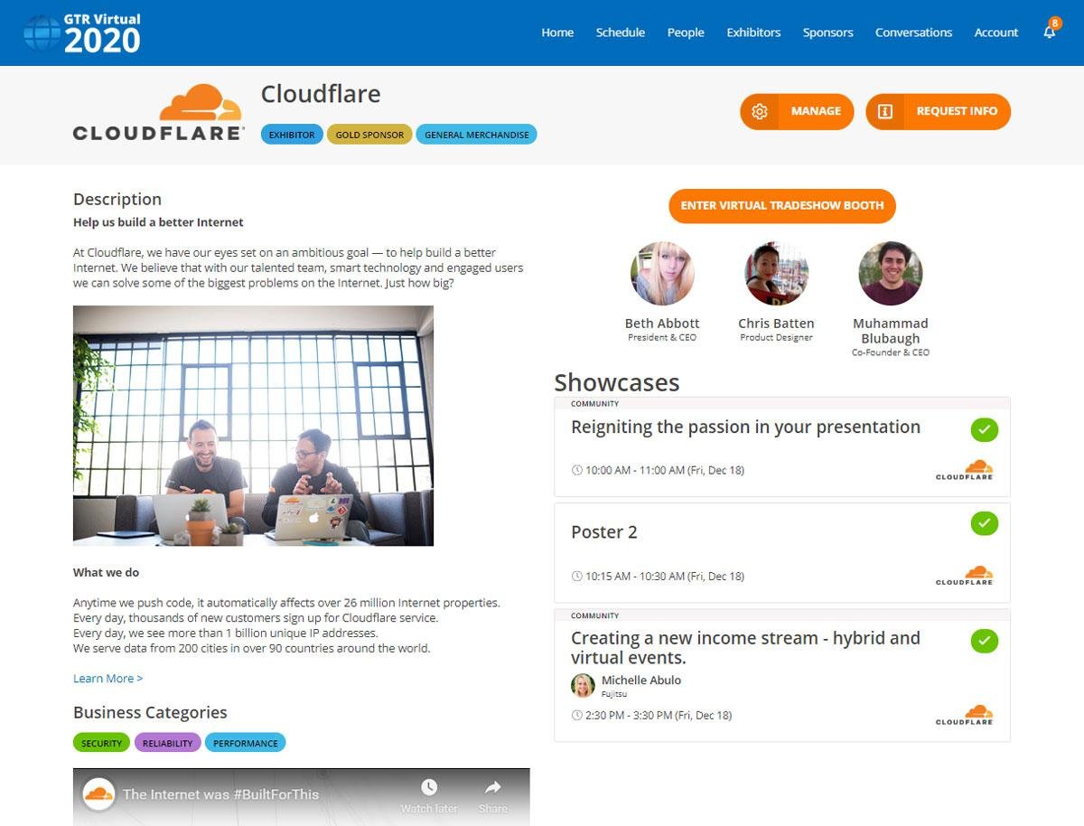 GTRâ„¢, a premier provider of event technology, is the ideal choice for event planners who prioritize outstanding service and high-quality offerings. Our solutions are designed with flexibility in mind, enabling seamless planning for in-person gatherings while also allowing for quick adaptations to virtual formats. Whether organizing conferences, trade shows, or corporate events, we facilitate an engaging online experience that combines webinars with networking opportunities. Attendees can participate in live keynotes and educational sessions through both live streams and recorded broadcasts. Although virtual networking cannot entirely replicate the benefits of in-person interactions, it serves as an excellent tool for enhancing professional connections and expanding knowledge. Additionally, we can develop a year-round virtual trade show featuring customized landing pages for sponsors and exhibitors, allowing visitors to "request information" just as they would by having their badge scanned at a physical event. This innovative approach not only enhances the event experience but also maximizes engagement and interaction among participants.