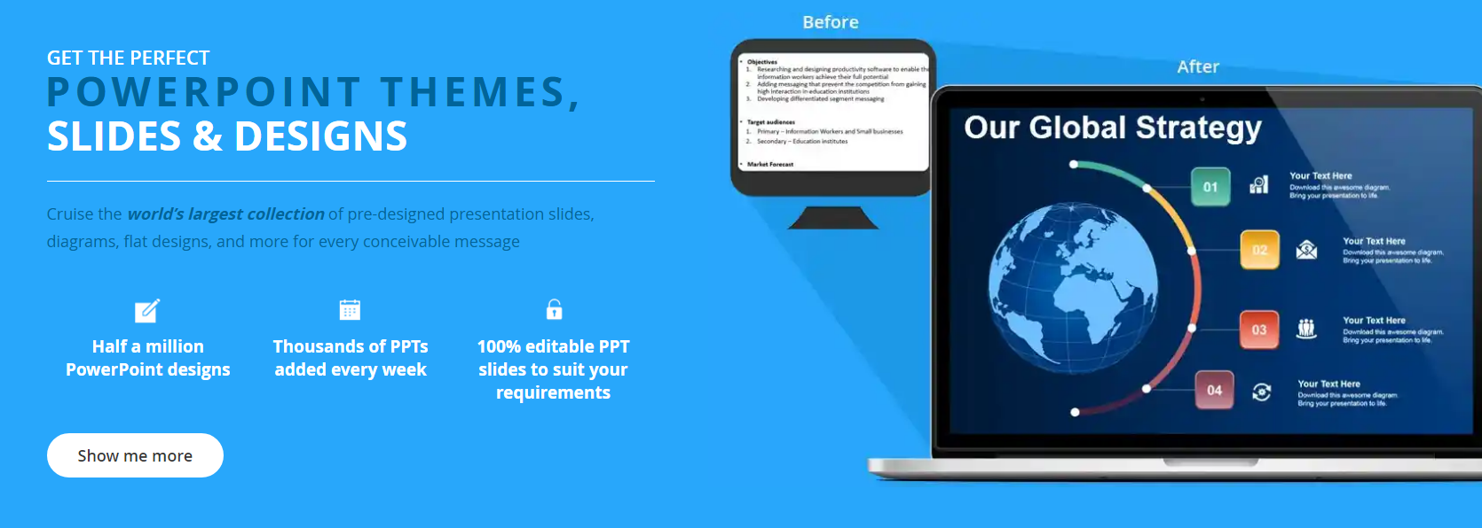 We have meticulously crafted and researched an extensive library of over 100,000 topics, complemented by a vast array of more than a hundred thousand editable slides and documents, which positions you for success. Explore the most comprehensive collection of pre-designed presentation slides, flat designs, diagrams, and much more to effectively convey any message. You can quickly initiate your project with ready-to-present PowerPoint slides tailored to any topic.