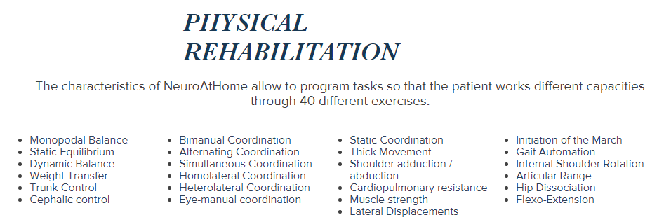 NeuroAtHome is distinguished as the only rehabilitation software specifically designed to tackle the effects of neurological injuries and neurodegenerative diseases. During rehabilitation sessions, it diligently monitors the exercises performed, evaluating the quality and execution of each movement, which enables the healthcare professionals overseeing patient recovery to objectively track their progress. By incorporating cutting-edge real-time motion capture technology that does not require any wearable devices, alongside virtual reality and interactive touch screens, NeuroAtHome provides an extensive array of 80 exercises focused on both physical and cognitive recovery. Its flexibility allows it to be utilized in diverse settings such as hospitals, clinics, outpatient facilities, and in the comfort of patients' homes. Regardless of the environment, clinical teams can customize rehabilitation sessions to align with the specific needs of each patient, making adjustments for future sessions based on the results obtained. This level of adaptability guarantees that every patient's unique path to recovery is thoughtfully supported and enhanced, ultimately fostering a more effective rehabilitation experience. The integration of technology into this process not only streamlines rehabilitation but also empowers patients to take an active role in their recovery journey.