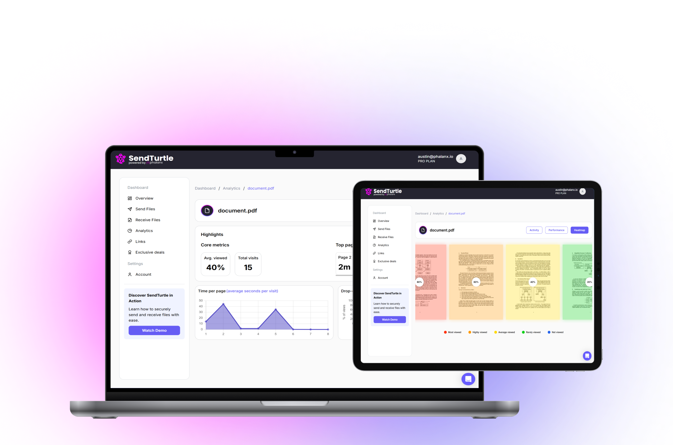 SendTurtle (by Phalanx) is a software product that provides founders, business owners, and consultants with document sharing and analytics. SendTurtle DeepIQ enables AI to give you the ultimate insight into the documents you share and receive. Know what happens after you hit send, track views, and uncover intent.