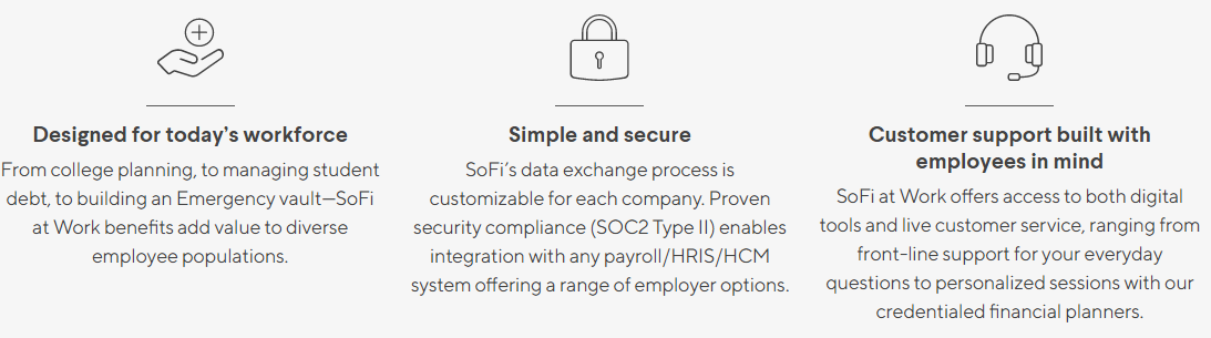 In 2011, SoFi emerged as a pioneer in the realm of student loan refinancing. Throughout the years, we have broadened our SoFi at Work initiative for employers, which includes a diverse array of services, tools, and educational resources aimed at equipping employees with a comprehensive understanding of their financial landscape. This empowers them to make well-informed financial decisions and pursue their financial goals effectively. Our employee benefits program provides a seamless and comprehensive solution for employers eager to improve their staff’s financial health, offering contributions toward student loans and 529 plans, along with a variety of educational tools. The recently launched SoFi at Work Dashboard acts as a consolidated financial center for employees, giving them a thorough overview of their finances, an assortment of decision-making tools, and a gateway to their available benefits, all designed to support them in reaching their financial aims. By addressing various employee needs, from college planning and student debt management to fostering an emergency savings fund, the benefits from SoFi at Work significantly enhance the overall financial well-being of the workforce. This holistic approach not only enriches individual financial situations but also contributes to a more productive and engaged workplace. Ultimately, SoFi is dedicated to creating a supportive environment where employees can flourish financially and realize their long-term ambitions.