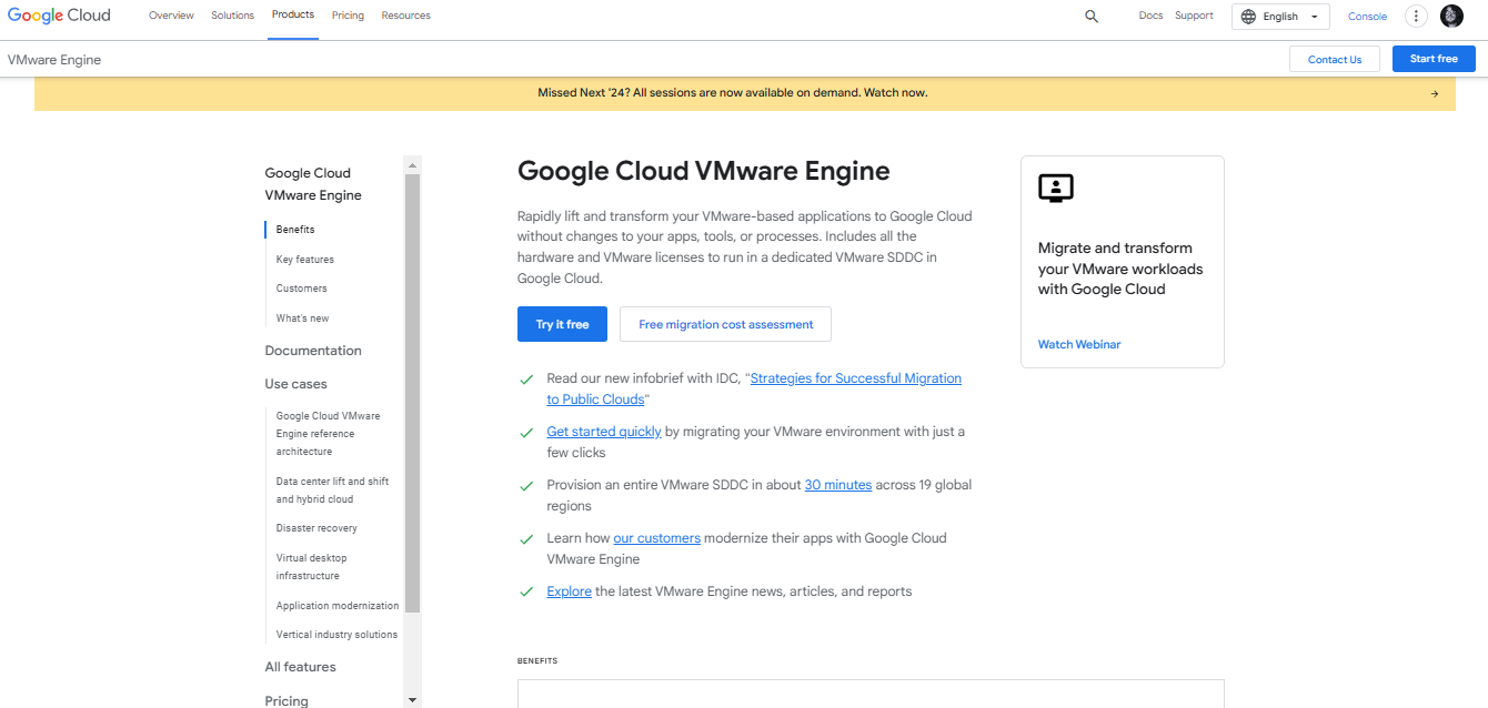 Effortlessly transition and adapt your VMware applications to Google Cloud without the need to change your existing applications, tools, or workflows. This service includes all essential hardware and VMware licenses necessary for operating within a specialized VMware SDDC on Google Cloud. Unlike other options, we enhance the usage of VMware services by offering integrated identities, management, support, monitoring, as well as all required licenses, cloud services, and billing solutions, streamlining the entire process. Embrace the adaptability and scalability that cloud computing provides; you can set up a new private cloud in about 30 minutes, complete with dynamic resource management and auto-scaling features. Your critical enterprise applications can continue to run in the cloud without requiring any changes. Google Cloud VMware Engine seamlessly collaborates with leading database, storage, disaster recovery, and backup ISV solutions, creating a well-rounded ecosystem. Built on the solid and scalable foundation of Google Cloud, VMware Engine ensures fully redundant networking, which is crucial for supporting even the most demanding workloads. This infrastructure empowers organizations to enhance their cloud experience while maintaining optimal performance and dependability. As a result, businesses can confidently leverage the power of the cloud to drive innovation and efficiency in their operations.