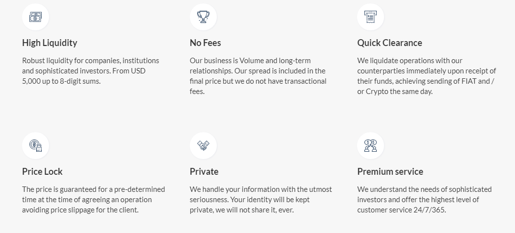 We offer a specialized service designed for private institutions and discerning investors interested in engaging in significant transactions marked by fixed pricing and post-trade settlement. Our services encompass Over the Counter (OTC) solutions for the acquisition and sale of a wide range of digital assets, backed by round-the-clock support, ample liquidity, quick settlement times, and multi-currency capabilities. The minimum investment requirement is set at $5,000, allowing for investment amounts that can reach up to eight figures, thereby ensuring substantial liquidity for businesses and sophisticated investors alike. Our business approach emphasizes high-volume transactions and the cultivation of long-term relationships, with our spread seamlessly incorporated into the final price, thus averting any additional transaction fees. We guarantee that trades are executed promptly upon receipt of funds from our clients, facilitating same-day transfers for both FIAT and cryptocurrency. Additionally, we assure that the agreed-upon price remains valid for a predetermined period during each transaction, safeguarding our clients against potential price volatility. Our commitment to exceptional service and reliability aims to foster a trusted partnership with our clients that goes beyond simple transactional interactions, paving the way for mutual growth and success in the digital asset landscape. By prioritizing client satisfaction and strategic alignment, we strive to create a lasting impact in the financial ecosystem.
