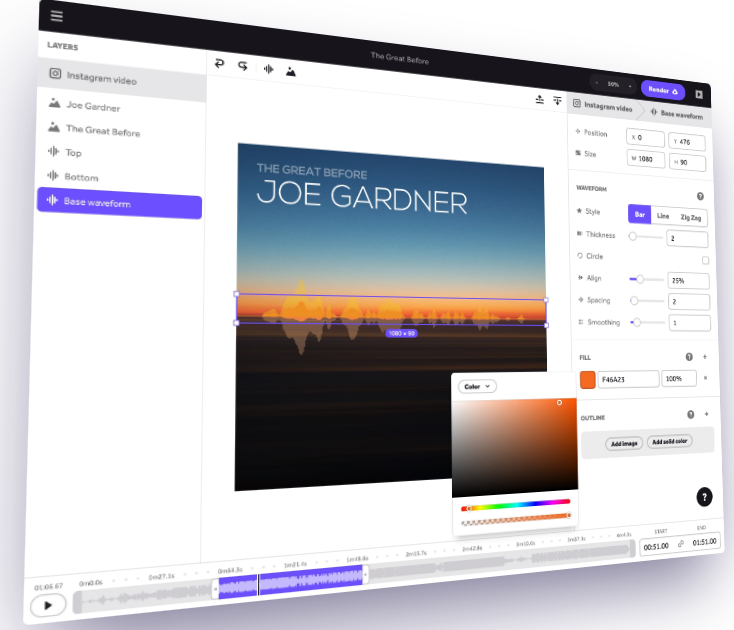 SongRender presents a groundbreaking audio visualization tool that features versatile waveforms, making the creation of engaging music visualizer videos an effortless task. This platform allows users to design not only music visualizers but also podcast snippets and a variety of other content tailored to boost their online presence. You can easily integrate images, sound, and text while editing your video straight from your web browser, which guarantees a refined final product in no time. With an array of customizable music visualizers, progress bar effects, graphics, and fonts, distinguishing yourself in the digital landscape is made easier. Exporting your videos for any social media platform, including YouTube, Instagram, TikTok, Stories, Twitter, Facebook, and LinkedIn, is a seamless experience, all available in stunning 1080p HD quality. Moreover, SongRender provides features for producing eye-catching clips for each podcast episode, complete with progress bar animations and audio visualizations. Given that many social media channels limit audio-only uploads, SongRender streamlines the distribution of your audio content across various platforms. The intuitive editing interface combined with numerous customization options enables anyone to create videos of professional quality, making it an essential tool for content creators. Whether you are an experienced professional or a beginner, SongRender gives you the tools to elevate your audio storytelling through captivating visual elements. This ease of use and flexibility ensures that every creator can develop unique content that resonates with audiences.