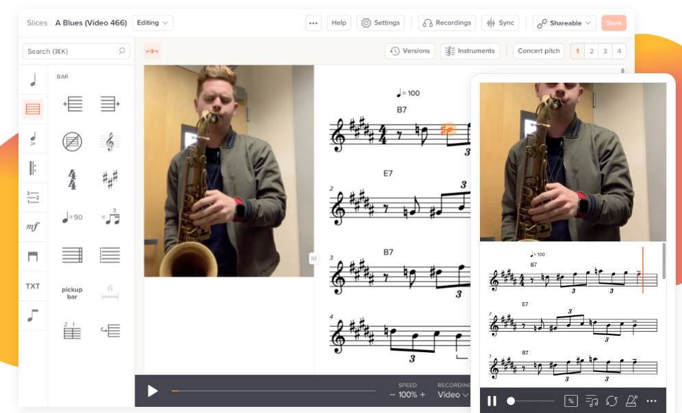 Transforming sheet music into an interactive and captivating educational tool is essential for enhancing practice, teaching, sharing, and transcribing activities. By merging musical notation with actual audio recordings, it effectively closes the gap between the written score and the subtleties of tone, expression, and technique that traditional notation often misses. Soundslice expertly combines these elements, offering intuitive practice tools that significantly enrich the learning process. Users can simply click on a note to be whisked away to that precise moment in the video or highlight multiple notes for a looping practice segment. The platform also provides features such as playback speed adjustment, key changes, and the ability to isolate particular sections, making it versatile for any device—be it a phone, tablet, or desktop—as it runs directly in a web browser without any installation required. No matter the instrument, musical genre, or style, our player is crafted to deliver a seamless experience across all types of music. Users can upload their own files or start from scratch, easily importing music from various software like MusicXML and Guitar Pro, or composing directly within our user-friendly editor. Furthermore, it allows for simple synchronization of sheet music with YouTube videos, MP3s, and other audio formats, all while facilitating project creation and access on any device. With all projects stored in the cloud, the platform is especially beneficial for use on both desktop and tablet, ensuring a smooth and reachable music learning experience. Additionally, the capability to collaborate with fellow musicians enhances the community aspect, making it a comprehensive solution for music enthusiasts everywhere.