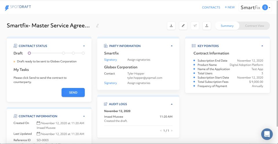 SpotDraft serves as a comprehensive contract automation solution that empowers organizations to efficiently draft, review, and oversee their contracts. By utilizing SpotDraft, contemporary legal teams can significantly decrease their contract turnaround times by up to 90%. This platform enables business teams to automate a variety of monotonous tasks throughout the entire contract lifecycle, allowing them to concentrate on essential aspects of their growth. SpotDraft is pioneering innovative tools that invigorate contracts, alleviating the burdens of paperwork management. Given that contracts underpin critical business relationships, companies typically invest considerable time drafting, negotiating, and managing reminders and invoices. With SpotDraft's AI-enhanced platform, users can effortlessly create, sign contracts, and automate reminder notifications. By leveraging SpotDraft, businesses can streamline their operations, effectively allowing them to run with minimal manual intervention. Ultimately, this innovative approach not only saves time but also enhances overall efficiency, enabling organizations to thrive in their respective markets.
