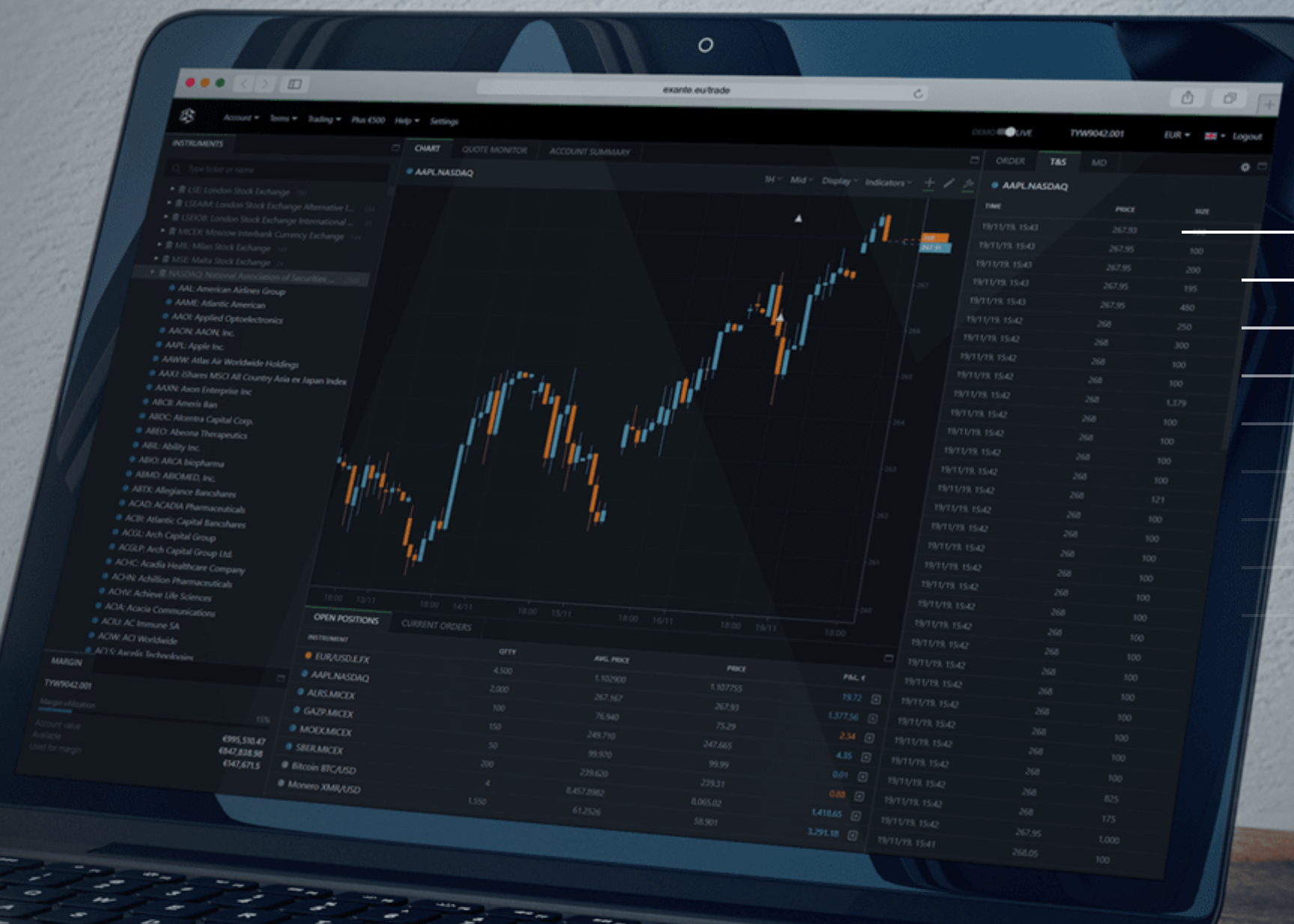 With your EXANTE account, you can easily access over 50 financial markets around the globe, including prominent exchanges like NASDAQ, the London Stock Exchange, and the Tokyo Stock Exchange.