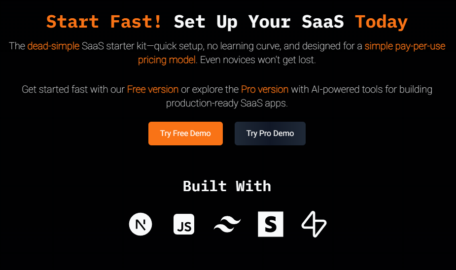 StartFast is an efficient SaaS starter kit designed for rapid deployment and ease of use, allowing developers and entrepreneurs to launch their projects swiftly. Built on Next.js 14, Supabase, TailwindCSS, and Stripe, it boasts a clean codebase that eliminates unnecessary complexities, allowing users to focus on their core ideas. Key features include passwordless authentication, seamless Stripe Checkout integration for easy payment processing, and a flexible token-based usage model that supports modern pay-per-use pricing methods. The platform emphasizes simplicity, showcased by a database schema of just four lines, and is backed by comprehensive documentation that makes it accessible for novices. StartFast provides both a free tier and a pro version; the latter features AI-enhanced tools for creating SEO-friendly blog posts and landing pages, as well as on-page SEO evaluations, keyword research functions, and a centralized configuration system for easy customization. Furthermore, StartFast's dedication to user support ensures that even those new to SaaS development can navigate and utilize its features effectively, making it an invaluable resource for aspiring tech entrepreneurs. This combination of user-centric design and powerful functionality positions StartFast as an excellent choice for anyone looking to succeed in the SaaS landscape.