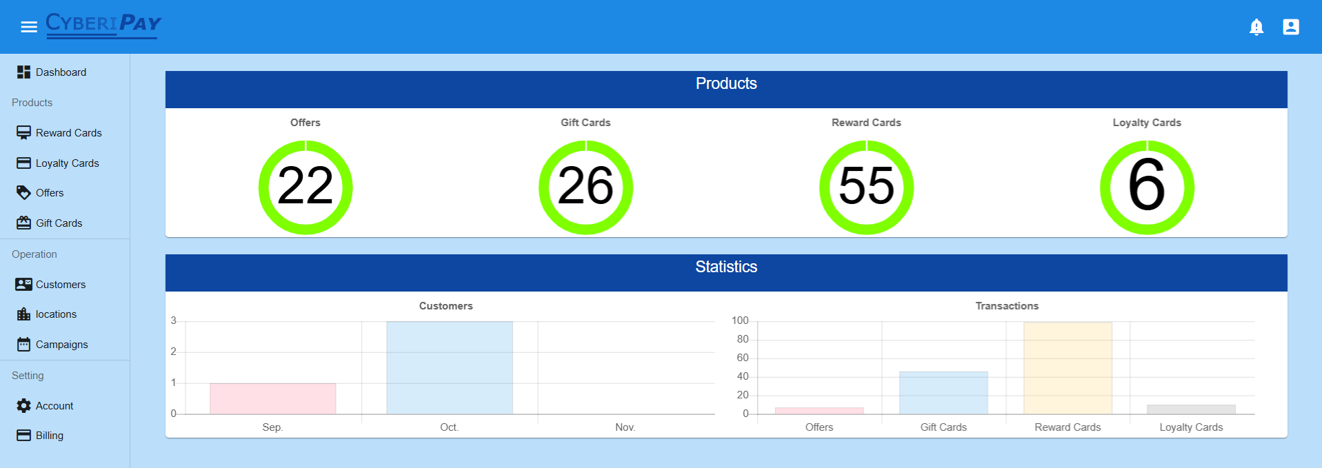 CyberiPay empowers businesses to effortlessly create, distribute, and redeem a variety of digital cards, including gift cards, loyalty cards, and special offers, all while minimizing operational challenges.