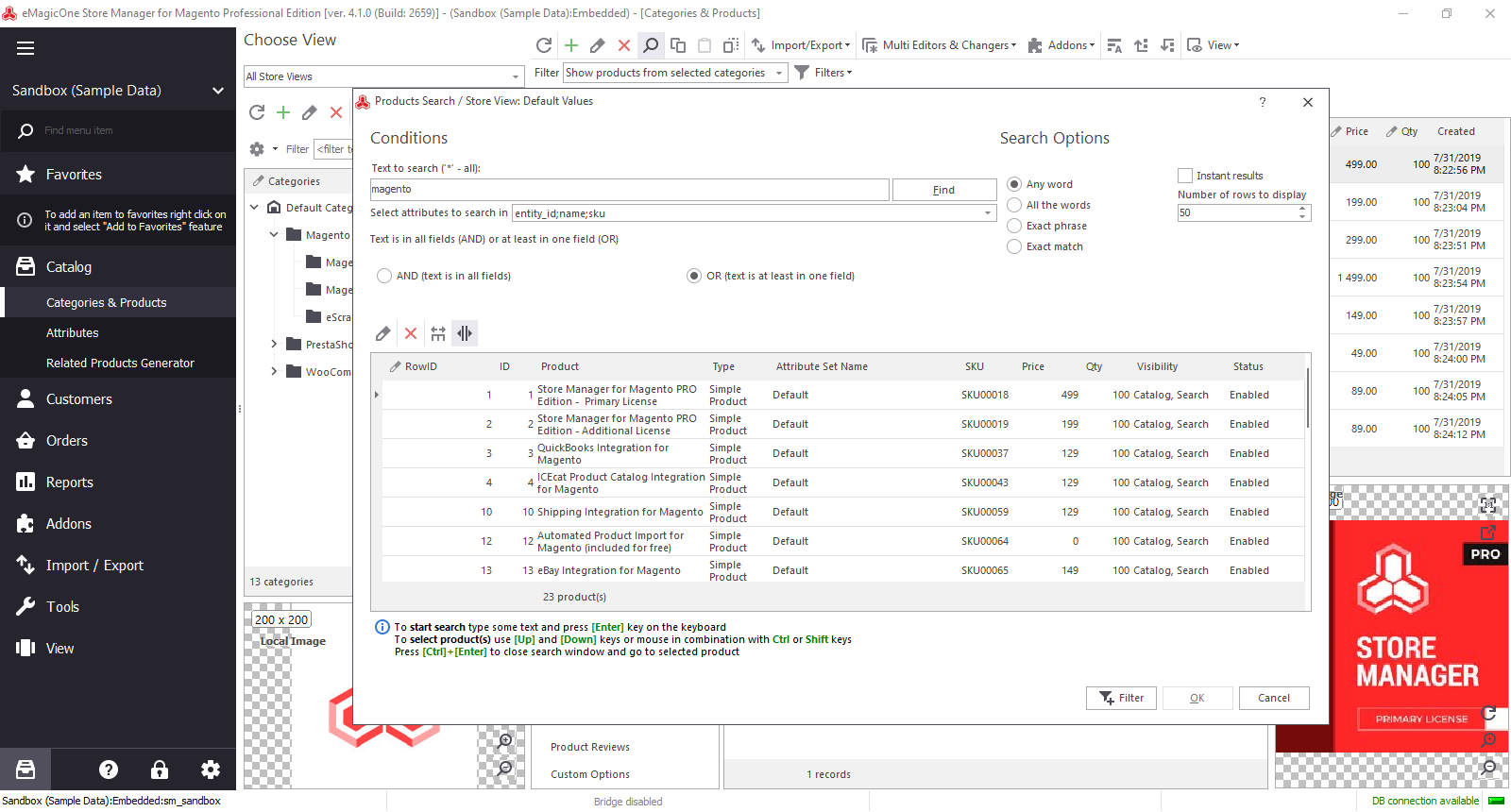 In addition, Store Manager comes equipped with add-ons that facilitate the integration of your Magento catalog with platforms like Amazon and eBay, support for QuickBooks Desktop and Online accounting, USPS shipping services, and tools to design flyers and lookbooks via a PDF Catalog Creator.