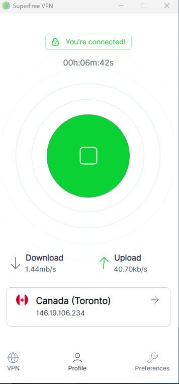 SuperFree VPN is a premium-grade, entirely free VPN service tailored for Windows PC users who demand fast, secure, and private internet browsing without the hassle of subscriptions or hidden fees. Employing advanced anti-firewall technologies such as Stealth, OpenVPN, and WireGuard protocols, SuperFree VPN ensures users can circumvent censorship and surveillance while maintaining the highest standards of data encryption and anonymity. The network boasts over 40 strategically placed servers worldwide, enabling users to connect seamlessly with minimal latency and maximum speed. This makes it ideal for streaming geo-blocked content, engaging in online gaming, or securing sensitive activities on public Wi-Fi hotspots. The VPN offers unlimited bandwidth and unrestricted usage, providing a truly open internet experience without throttling or data caps. Its easy-to-use interface is designed for rapid connection and effortless operation, making privacy protection accessible to beginners and advanced users alike. SuperFree VPN is committed to preserving online freedom by combining robust security features with a global infrastructure optimized for performance. It prevents tracking, blocks malicious actors, and encrypts internet traffic to shield user data at all times. Trusted by thousands of users worldwide, SuperFree VPN stands out as a reliable and fast VPN solution that doesn’t compromise on safety or speed. Experience total online freedom and peace of mind with SuperFree VPN’s trusted, no-cost protection.