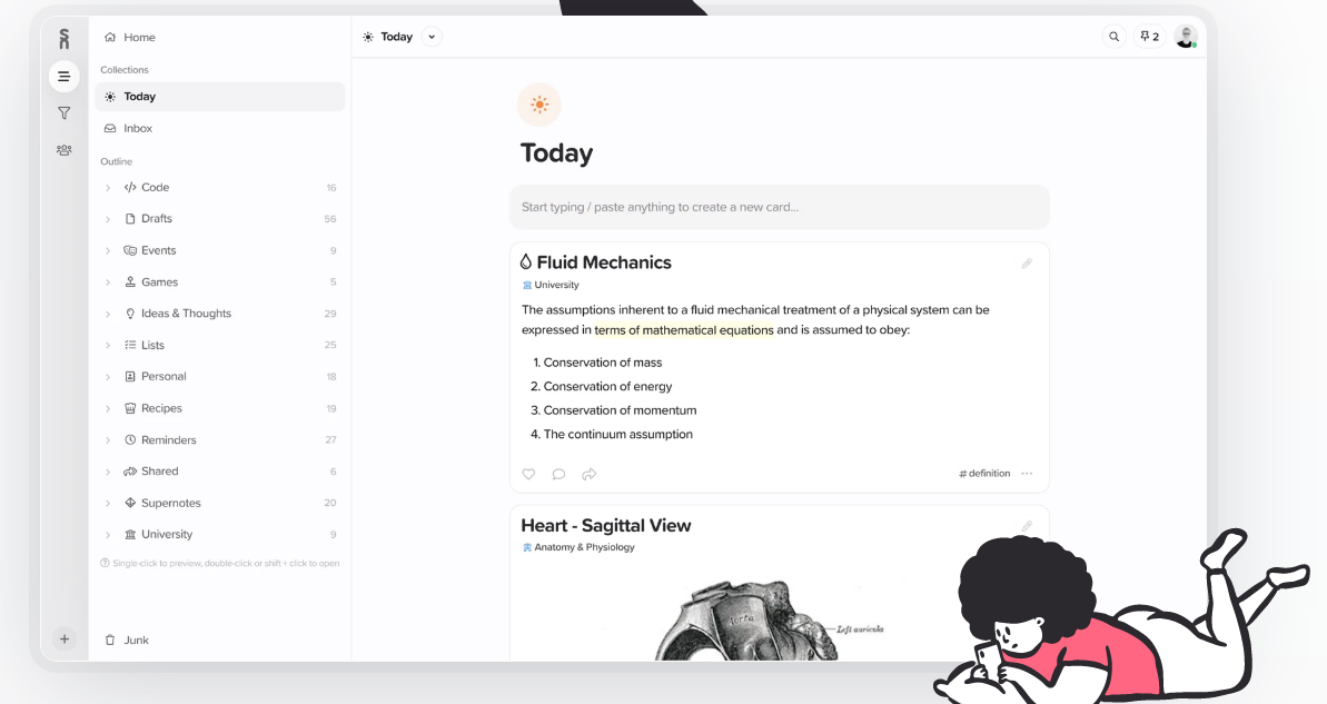 Supernotes offers a modern and effective way to handle your ideas, notes, tasks, and lists. It replaces clunky file formats with efficient digital note-cards that support a variety of features, including mathematical formulas, tables, images, checklists, and even emojis. You can easily arrange your note-cards according to your preferences, using filters, search capabilities, and sorting tools to quickly find any specific note. Furthermore, the platform allows you to link your thoughts together in a manner that traditional document formats simply cannot achieve. Your notes are securely kept on our servers, granting you easy access from any device you choose. Whether you want your notes to remain private or to collaborate in real-time with peers, you have full control over your sharing options. Acknowledging the value of your time, Supernotes streamlines numerous tasks, allowing you to focus on what truly matters. With no need for formatting, downloads, or delays, the platform operates smoothly and efficiently. Additionally, Supernotes is built to adapt to your evolving needs, making it a versatile tool for both individual and collaborative endeavors. It empowers users to enhance their productivity while maintaining a user-friendly experience.