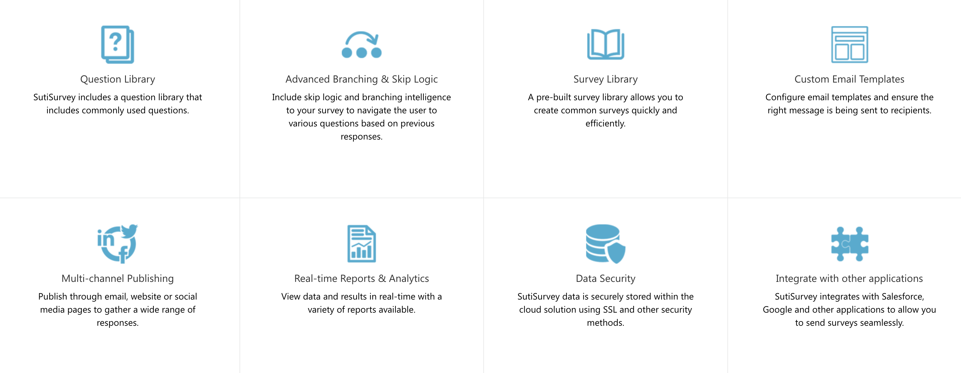 SutiSurvey is an online survey tool designed to assist organizations in creating and distributing digital questionnaires with ease. Users can customize surveys, gather feedback, and analyze data efficiently using this platform. Suitable for businesses of all sizes, SutiSurvey reduces reliance on paper, cuts down on manual tasks, and decreases the expenses linked to collecting and managing survey responses. It includes an extensive library of common questions, making it easier for users to build their surveys. The platform incorporates skip logic and branching options, which adjust the survey flow based on previous answers, enhancing the user experience. Additionally, SutiSurvey offers a collection of pre-built surveys that facilitate quick deployment of standard questionnaires. Users can also set up email templates to ensure that their intended messages reach participants effectively. By providing these features, SutiSurvey simplifies the survey process, ultimately improving the experience for both the organizations conducting the surveys and the respondents providing feedback, thereby increasing engagement and response rates.