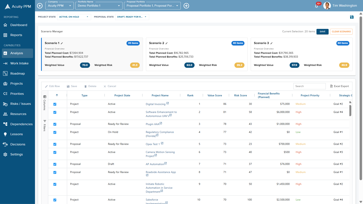Acuity PPM offers a user-friendly software solution designed for Project Management Teams (PMOs) to effectively oversee their project portfolios. It features a Work Intake module that facilitates demand management, enabling users to create and assess new project requests through methods like prioritization, financial planning, and resource management, particularly in terms of capacity planning.