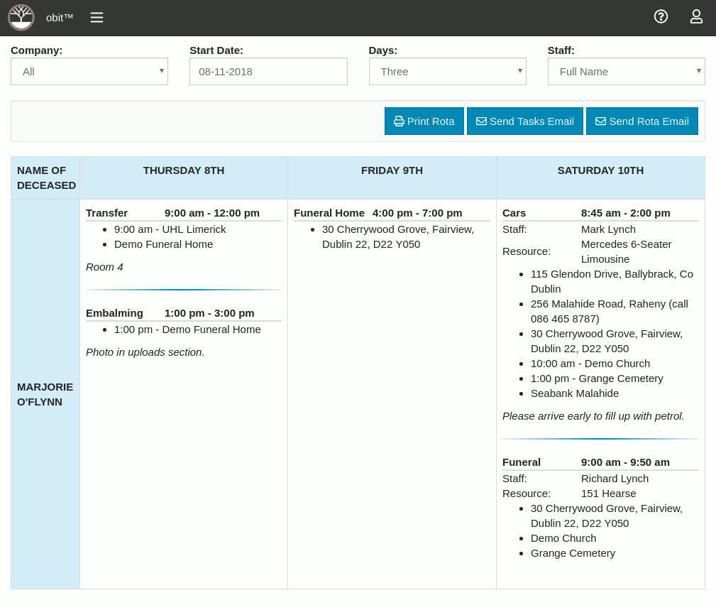 Obit is an innovative web application for funeral management that operates in the cloud and was developed in collaboration with funeral professionals, overseeing the complete funeral process. With Obit, users enjoy the flexibility of accessing the platform from any device, whether it’s a PC, Mac, or tablet. The application features a scheduling tool that allows for effective staff coordination via a calendar and rota system. Users can produce a variety of professional documents including invoices and death notices with ease. Financial management is streamlined with tools for invoicing, maintaining a cashbook, and the ability to export data to Sage. Reporting capabilities enable the generation of both location-specific and chart-based reports. Additionally, Obit allows for seamless integration with your website to display notices. Security is a priority, offering Two-Factor Authentication and ensuring that all data is encrypted both during transmission and while stored. Currently, Obit is under continuous enhancement, with new features being regularly implemented based on user suggestions to improve functionality and user experience.