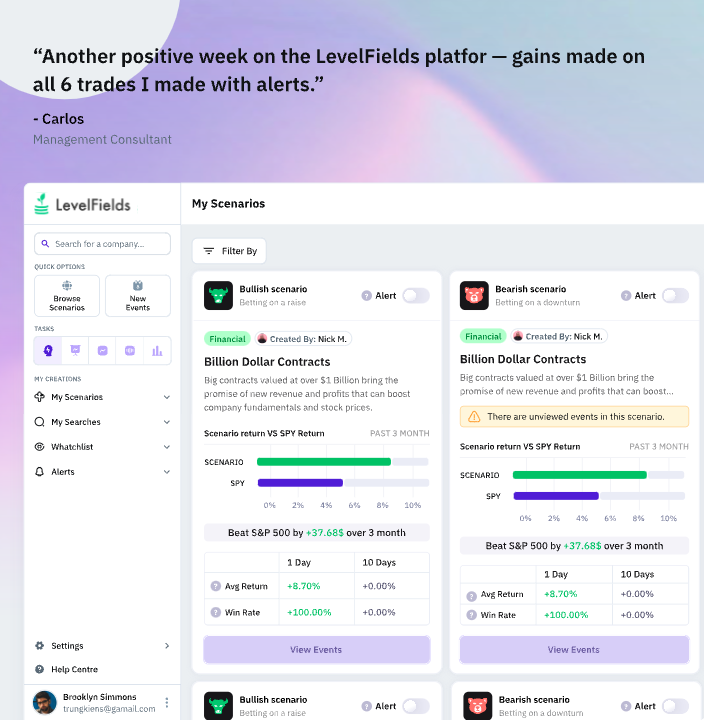 LevelFields is an innovative fintech application powered by artificial intelligence that streamlines the often laborious process of investment research, enabling investors to quickly and efficiently identify optimal stock or options trades. With this app, there’s no need for outdated calculators, complex spreadsheets, or the myriad of stock picks frequently touted by so-called "analysts" in the media. LevelFields eliminates the uncertainties and emotional biases associated with investing, making it an essential tool for those looking to harness AI for both stock and options trading.