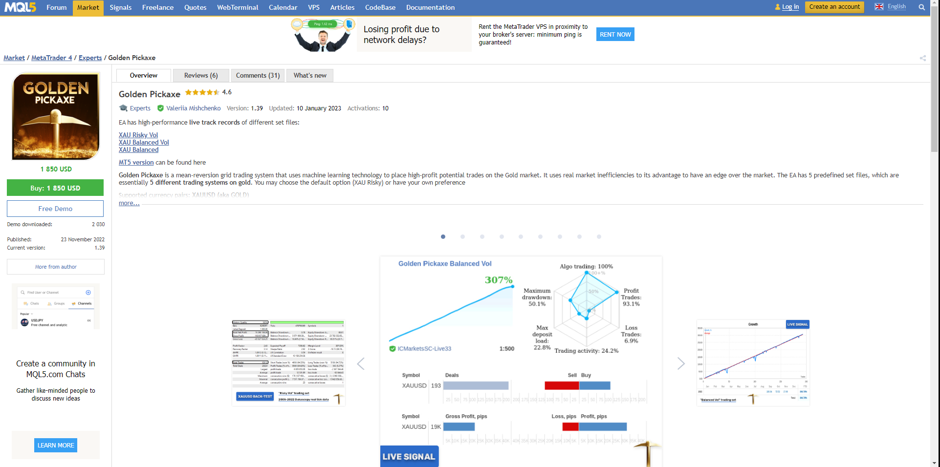 As a bonus, users can benefit from five settings that cater to different risk profiles, a 14-day free trial period, a 30-day money-back guarantee, an accurate profit calculator, and a modern user dashboard for managing licenses. Furthermore, the package includes a customized server from ForexVPS.net, pre-installed with the EA, available for six months, making it easy for users to get started right away. You can explore Golden Pickaxe risk-free for 14 days on the ValeryTrading website, allowing potential users to experience its capabilities firsthand.