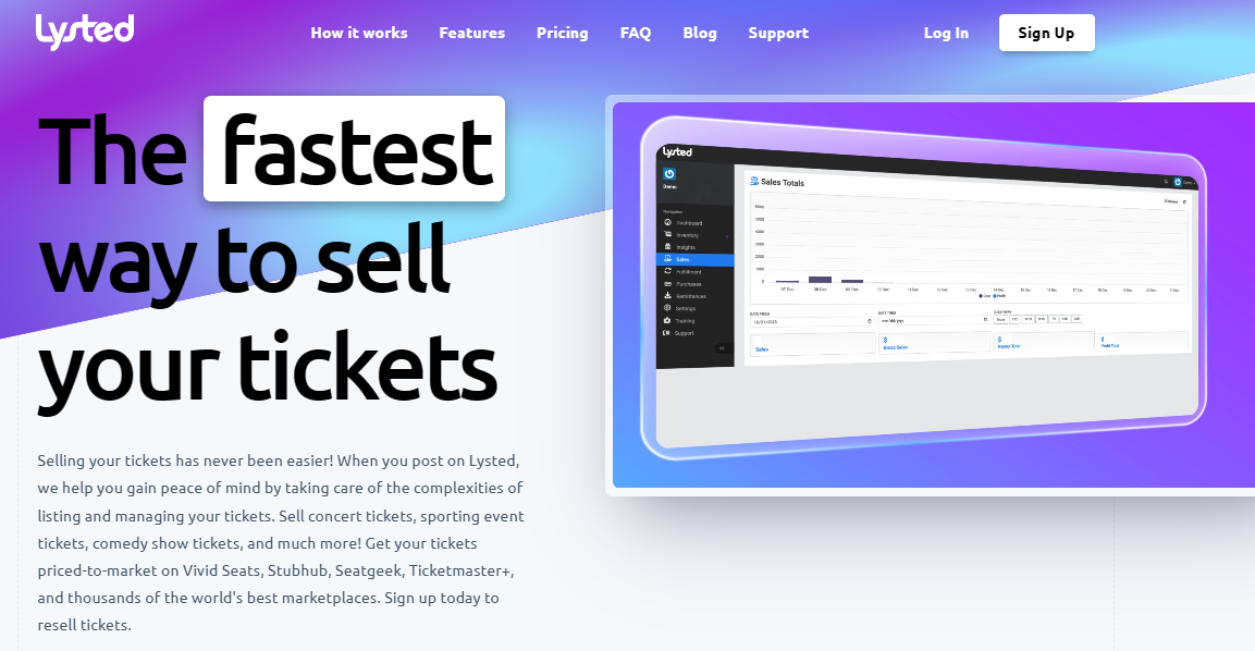 Lysted is a cutting-edge platform that simplifies the ticket-selling journey for a wide range of events, such as concerts, sporting competitions, and comedy shows. By enabling users to list their tickets across multiple platforms at once, Lysted increases exposure and enhances the chances of making a sale. The platform prioritizes ease of use and is supported by a robust distribution network that streamlines transactions for sellers. Users can ensure their ticket prices remain competitive across thousands of leading marketplaces, optimizing their earning potential. To help users maximize profits, Lysted utilizes sophisticated pricing tools and analyzes historical data, keeping an eye on market fluctuations to avoid underpricing. The entire process of setting prices and reselling tickets has been made exceptionally straightforward. After an event concludes, Lysted guarantees that funds are distributed securely through bank deposits, thanks to its collaboration with Hyperwallet, ensuring sellers receive their payments quickly and safely. Additionally, Lysted's dedication to providing precise and current market insights enables users to confidently make well-informed pricing choices. This ensures that sellers are equipped with the necessary information to adjust their strategies in real-time.