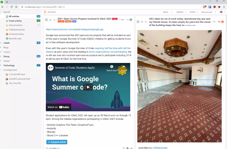 Tiny Tiny RSS is a free, open-source web-based news feed reader and aggregator that enables users to effortlessly access both RSS and Atom feeds. This self-hosted application, licensed under the GNU GPLv3, promotes data management and privacy for users, eliminating the need to rely on third-party services. It boasts a variety of powerful features, including the aggregation of feeds, keyboard shortcuts for efficiency, and the ability to import and export feeds via OPML seamlessly. Users can easily share content through multiple avenues such as exporting RSS feeds, installing plugins for various social media platforms, or sharing links directly. Moreover, Tiny Tiny RSS supports the sharing of various content formats and is enhanced with customizable plugins and themes that make it possible to embed entire articles through readability features and site-specific enhancements. The software is equipped with deduplication features, utilizes perceptual hashing for images and podcasts, and offers extensive article filtering options, alongside a robust JSON API for developers to build upon. With its comprehensive capabilities, Tiny Tiny RSS seeks to enrich the user experience while prioritizing privacy and control over personal data, making it a versatile choice for anyone looking to streamline their news consumption. In essence, it not only caters to individual preferences but also fosters a community of users who value data sovereignty.