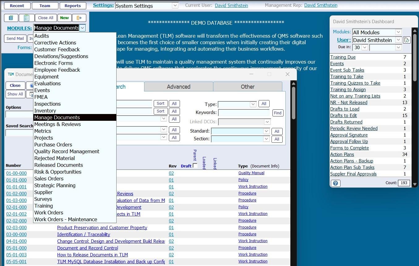 Total Lean Management (TLM) QMS Software aims to provide an economical and highly cohesive environment that is adaptable and continuously evolving, enabling the incorporation of specialized systems as necessary to develop a digital business ecosystem tailored to your organization’s workflow requirements. This flexibility ensures that the software can grow alongside your business, responding effectively to changing needs over time.
